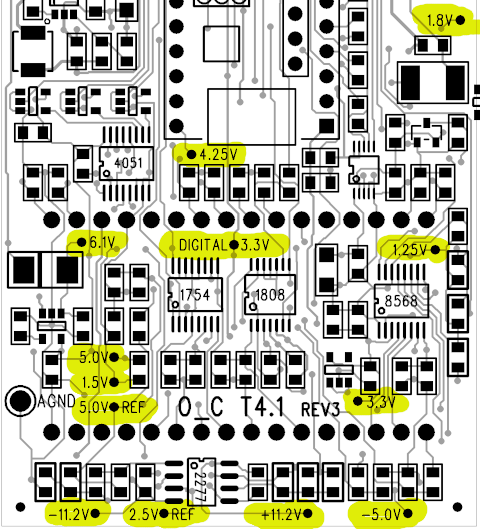 Identification voltage for O_C T4.1 rev 3 hardware: Phazerville firmware reads this voltage at startup to "know" which circuit board you have built. The voltage is created by R121 and R130.