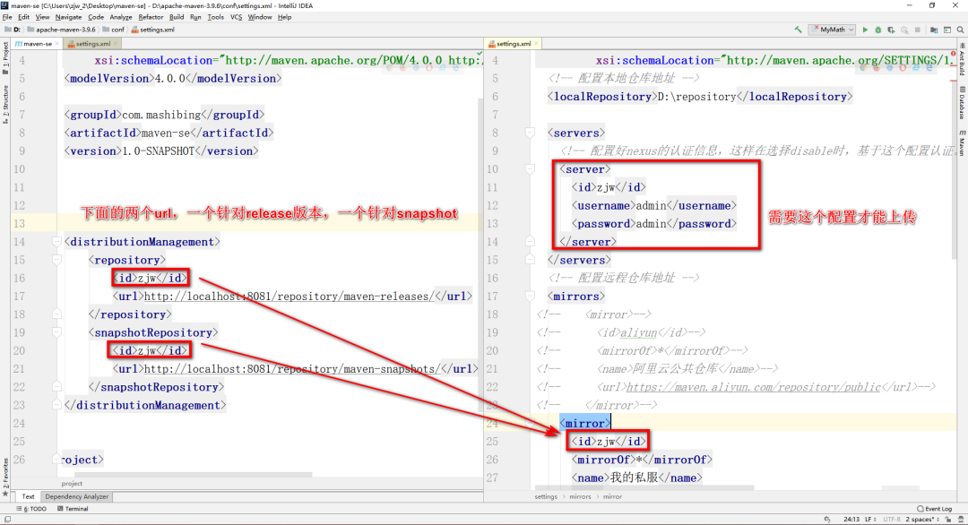 From eaf4d46b9c2626f37bdfec157af2ca3f7f99e9c2 Mon Sep 17 00:00:00 2001 From: BookSea <65435519+BookaiCode@users.noreply.github.com> Date: Sun, 6 Apr 2025 16:52:03 +0800 Subject: [PATCH 01/12] Update README.md --- README.md | 2 ++ 1 file changed, 2 insertions(+) diff --git a/README.md b/README.md index af1d7d8..1259b4e 100644 --- a/README.md +++ b/README.md @@ -186,6 +186,8 @@ - [实战Arthas:常见命令与最佳实践](https://mp.weixin.qq.com/s?__biz=Mzg4Nzc3NjkzOA==&mid=2247488559&idx=1&sn=4b5003cb33446ab4a6173285fe9d83d3&chksm=cf8467eaf8f3eefc033de8f63cba9f0d7b2b5eb0ccfb5209f458a9ab447367b34954f296638b#rd) +- [Maven实战](https://mp.weixin.qq.com/s/ErtWrRNzjJcR2ettUhAxsQ) + ### :bulb: 资源 ### - [精品电子书(持续更新)](/docs/md/PDF.md) From 76ec887d67808cb0e3ca90f1db14bd1b1d340d41 Mon Sep 17 00:00:00 2001 From: BookSea <65435519+BookaiCode@users.noreply.github.com> Date: Sun, 6 Apr 2025 16:52:46 +0800 Subject: [PATCH 02/12] Add files via upload --- .../Maven\345\256\236\346\210\230.md" | 672 ++++++++++++++++++ 1 file changed, 672 insertions(+) create mode 100644 "docs/md/\345\205\266\344\273\226/Maven\345\256\236\346\210\230.md" diff --git "a/docs/md/\345\205\266\344\273\226/Maven\345\256\236\346\210\230.md" "b/docs/md/\345\205\266\344\273\226/Maven\345\256\236\346\210\230.md" new file mode 100644 index 0000000..272fdb2 --- /dev/null +++ "b/docs/md/\345\205\266\344\273\226/Maven\345\256\236\346\210\230.md" @@ -0,0 +1,672 @@ +![](https://mmbiz.qpic.cn/mmbiz_png/jC8rtGdWScNMyAQwia9YnRcHk7s9wu3tfaaUxnw8IDuicNESzxXE0vOCwHptdhCz9B6QQtOWfGdeuNPelQbYqxxg/640?wx_fmt=png&from=appmsg) + +# Maven实战 + +## 一、Maven介绍 + +### 1.1 现存问题 + +jar包问题 + +* jar包需要在本地保存,而且在使用的时候需要将jar复制到项目中,再build才可以生效。 +* jar包的体量不小,一个项目中可能需要上百的jar的支持,这样一个项目就太大了。 +* 如果jar包的版本需要升级,需要重新去搜集新版本的jar包,重新去build,时间成本太高了。 +* 做一些功能时,可能需要因为几个,甚至十几个jar包,才能完成一个功能,都需要自己维护,甚至记住。 + +项目结构的问题 + +* 之前开发工具很多,有Eclipse,MyEclipse,IDEA,VSCode等等……不同的开发工具的项目的结构会有一些不同,多人协同开发时,就会造成冲突,甚至还需要统一开发工具。 + +整体项目的生命流程 + +* 整个项目从立项开发,到最后的发布上线到生产环境,没有一套统一的流程来控制。 + +### 1.2 Maven + +- Maven可以帮助我们更好地去管理jar包,只需要指定好jar的一些基本的标识,就可以让jar包支持我们的项目。而且Maven可以帮助咱们导入一个jar包后,自动将和它绑定好的其他jar包引入。 +- Maven可以提供一个统一的项目结构。 +- Maven也对整体项目的生命周期有响应的管理,从开始的编译、测试、打包、部署等操作,都提供了相应的支持。 +- Maven还提供了分模块开发的功能。 + +Maven是apache组织的一个顶级开源项目。 http://maven.apache.org + +## 二、Maven安装&环境变量配置 + +### 2.1 Maven的安装 + +首先下载Maven,直接去官网即可 + +在点击Download之后,需要注意看一下对JDK版本的支持。 + +Maven需要JDK的环境变量支持,一定要看一下自己又没有设置上JAVA_HOME + +![](https://mmbiz.qpic.cn/mmbiz_png/jC8rtGdWScNMyAQwia9YnRcHk7s9wu3tfQFcQNzsTx4Ga7xianbEIPEJxnaH8ibj2HDMNwWMcn0cMe5H6NAsGRxnw/640?wx_fmt=png&from=appmsg) + +需要根据自己的环境变量,下载对应的压缩包。 + +Linux、Mac选择.tar.gz的压缩包 + +Windows选择zip的压缩包 + +![](https://mmbiz.qpic.cn/mmbiz_png/jC8rtGdWScNMyAQwia9YnRcHk7s9wu3tfUIITxI3eZkQTPlAYXSB2gKsua68braYNnyXwcQVkUva7Lr1Jv9heMg/640?wx_fmt=png&from=appmsg) + +下载好之后,得到一个压缩包。 + +解压的目录最好没有任何的中文和空格等特殊字符。推荐放到磁盘的根目录下即可。 + +![](https://mmbiz.qpic.cn/mmbiz_png/jC8rtGdWScNMyAQwia9YnRcHk7s9wu3tfOWicdcoIEQibfats3LyAvORzE9D35Pb4qaNmHYrJQFlR1tRFUR2sMshg/640?wx_fmt=png&from=appmsg) + +> bin:含有mvn运行的脚本。 +> +> boot:含有类加载器框架,Maven使用这个框架来加载自己的类库。 +> +> conf:含有非常核心的settings.xml文件。 +> +> lib:含有Maven运行时需要的一些类库。 + +### 2.2 Maven的环境变量的配置 + +首先配置Maven的环境变量前,必须先查看一下JDK环境变量配置。 + +![](https://mmbiz.qpic.cn/mmbiz_png/jC8rtGdWScNMyAQwia9YnRcHk7s9wu3tftwTSkK9RXff4d6ibDHJVuOicRgWup6E85sOYtUzTOuFkpeicZCEEKq1icA/640?wx_fmt=png&from=appmsg) + +其次,查看一下前面说过的JAVA_HOME。 + +上述两点都ok的话,直接开始配置环境变量 + +* 配置MAVEN_HOME![](https://mmbiz.qpic.cn/mmbiz_png/jC8rtGdWScNMyAQwia9YnRcHk7s9wu3tfIapibng6RhD67b8WVboH8vQeQQbvHMtgVx5QwhVhC0ib8vBHTC4NjNJA/640?wx_fmt=png&from=appmsg) +* 配置到path![](https://mmbiz.qpic.cn/mmbiz_png/jC8rtGdWScNMyAQwia9YnRcHk7s9wu3tfl15jvKDGxlsJIVLrBdJWYZc5jW5RgJ5TQQib3aK7kvtOrFCMEnh2LNA/640?wx_fmt=png&from=appmsg) + +**配置完毕后,记得重新打开一下cmd窗口。别直接在之前的cmd窗口测试**。 + +在cmd窗口执行mvn -v + +![](https://mmbiz.qpic.cn/mmbiz_png/jC8rtGdWScNMyAQwia9YnRcHk7s9wu3tffGpHQds8Jk1ONP8k5pPKPtVqD4TcNGWceC4YF7k1XLW3KlLJl5z1yA/640?wx_fmt=png&from=appmsg) + +> Ps:常见错误,没有配置正确的JAVA_HOME + +![](https://mmbiz.qpic.cn/mmbiz_png/jC8rtGdWScNMyAQwia9YnRcHk7s9wu3tfto4PQfHW3F3eZPzqqZvwjk5JAt56H8ODN1qOiauoO3Ngcic27yxNibg6w/640?wx_fmt=png&from=appmsg) + +## 三、仓库&settings.xml配置(重要) + +### 3.1 仓库 + +Maven可以帮助咱们管理jar文件,但是,jar包是需要从网上下载下来的。 + +仓库很多,有官方的中央仓库,还有国内公司的仓库,还有公司内部会搭建的私服 + +![](https://mmbiz.qpic.cn/mmbiz_png/jC8rtGdWScNMyAQwia9YnRcHk7s9wu3tfB4U2Vbqn7CkqalibtOOKC28TBANS4SjqU