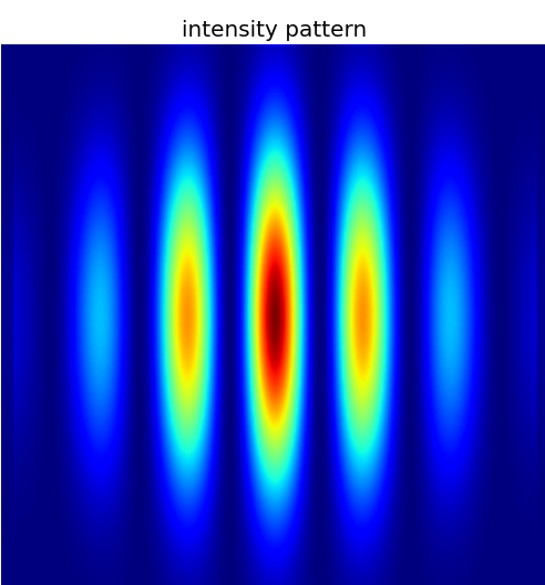 I = Intensity(2,F)The result is plotted using the fantastic matplot routines. We are not interested in axis around the pattern and we like to write a title above the plot.