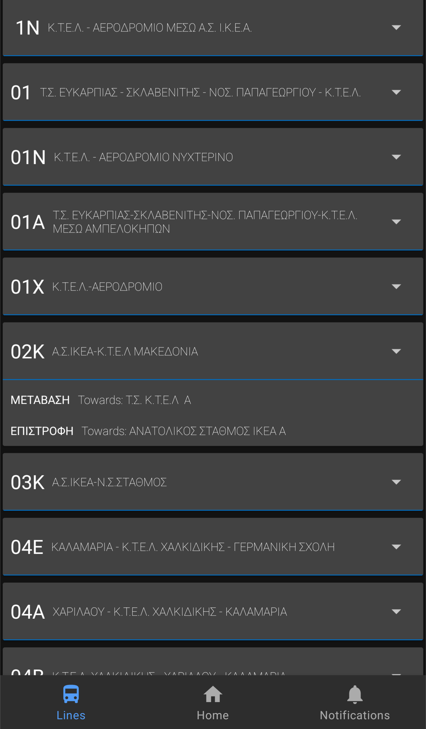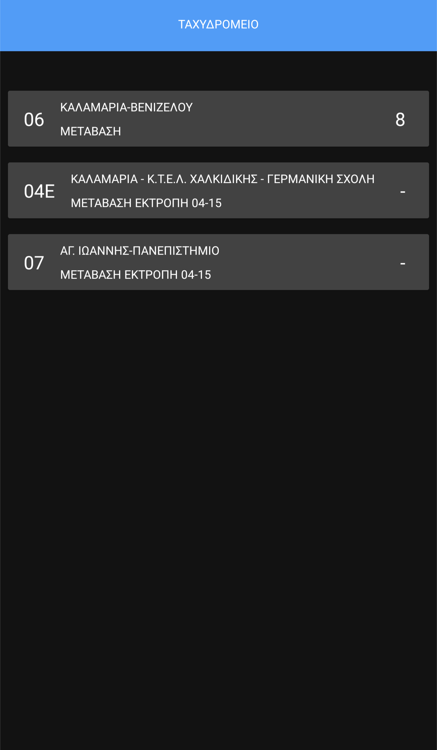 Thessaloniki Transport is an Android application offering information about buses in Thessaloniki. The application is currently work in progress and some things might not be polished, however the main functionality is present.