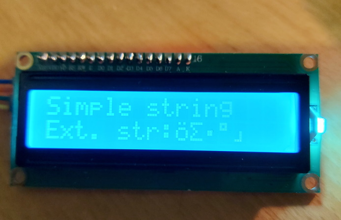 This demo shows how simple strings could be displayed on the LCD. For extended usage, take a look at Extended strings demo instead.