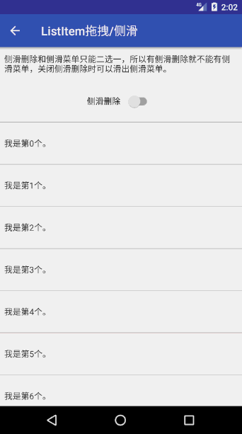 拖拽和侧滑删除的功能默认关闭的,所以先要打开功能: