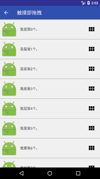 };想用户触摸到某个Item时就开始拖拽或者侧滑删除时,只需要调用startDrag()和startSwipe()并转入当前Item的ViewHoler即可。