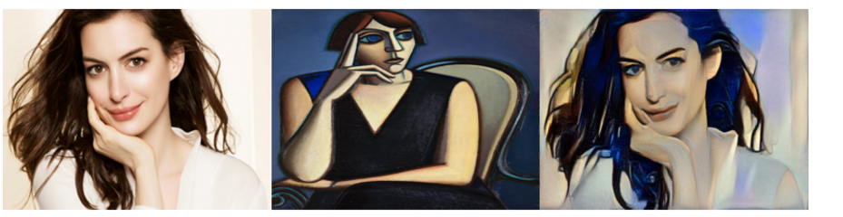 $ python main.py --content='png/content.png' --style='png/style.png'The following is the result of applying variaous styles of artwork to Anne Hathaway's photograph.
