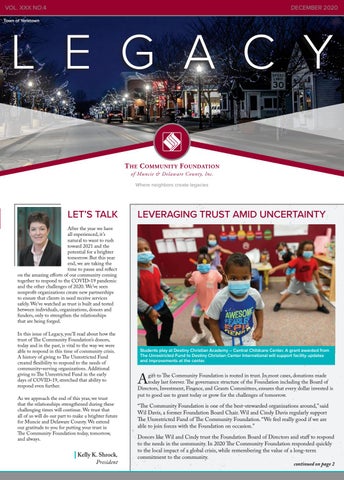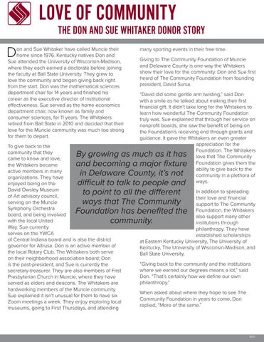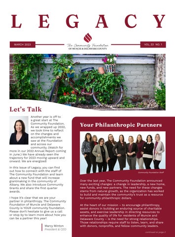 Our Mission: The Community Foundation of Muncie & Delaware County, Inc. encourages philanthropy, assists donors in building an enduring source of charitable assets, and exercises leadership in directing resources to enhance the quality of life for residents of Muncie and Delaware County.