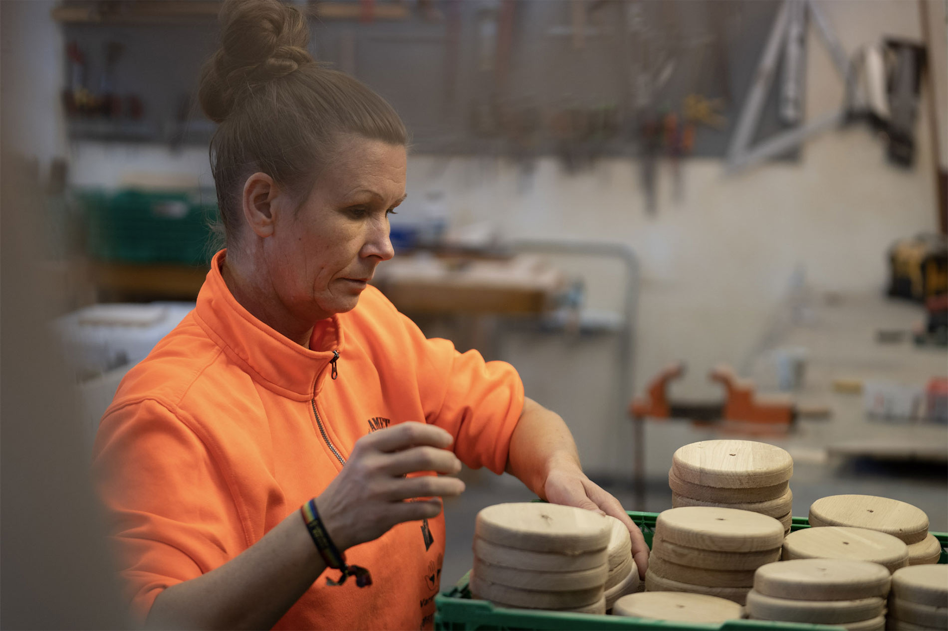 Produktene er håndlaget hos Kirkens Bymisjons verksteder. Våre arbeidere legger vekt på å levere kvalitet, for når de gjør en jobb som andre mennesker både ønsker og betaler for, øker selvtilliten og mestringsfølelsen.