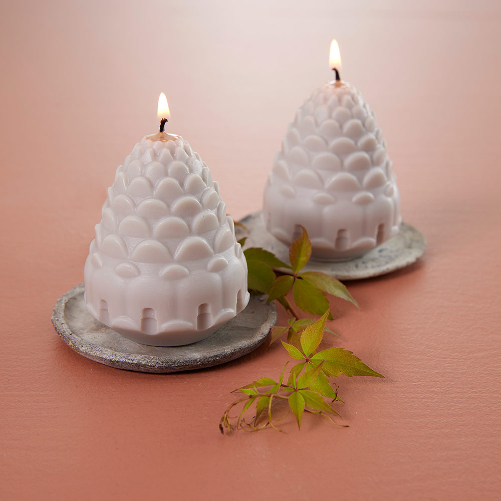 Dekorativt lys formet som en kongle. Et naturprodukt laget av rapsvoks