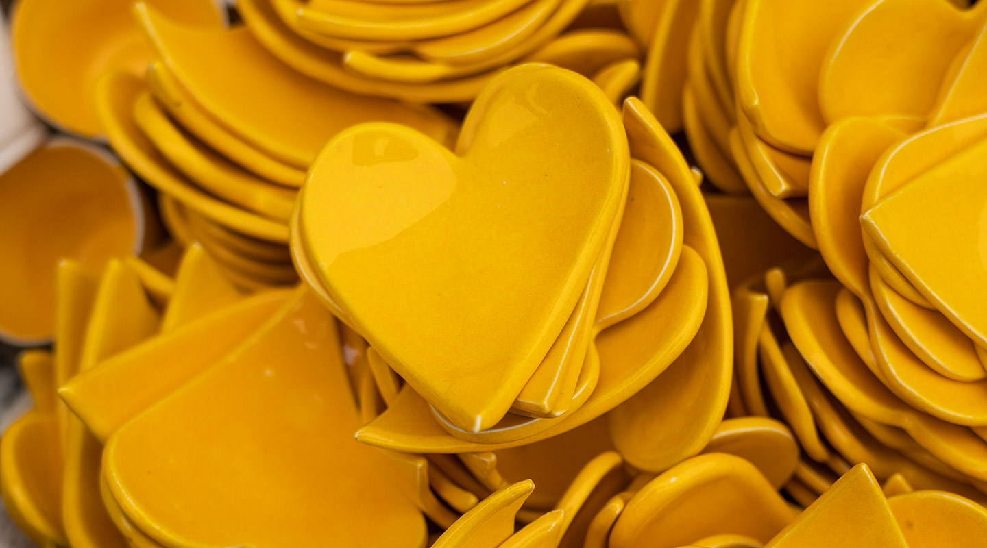 Håndlaget dekorativ hjerteformet skål laget i keramikk. Fås i flere farger. Pris pr stk.