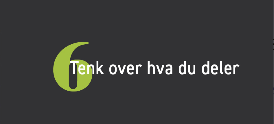 - Vær bevisst på hva slags personlig informasjon du publiserer.