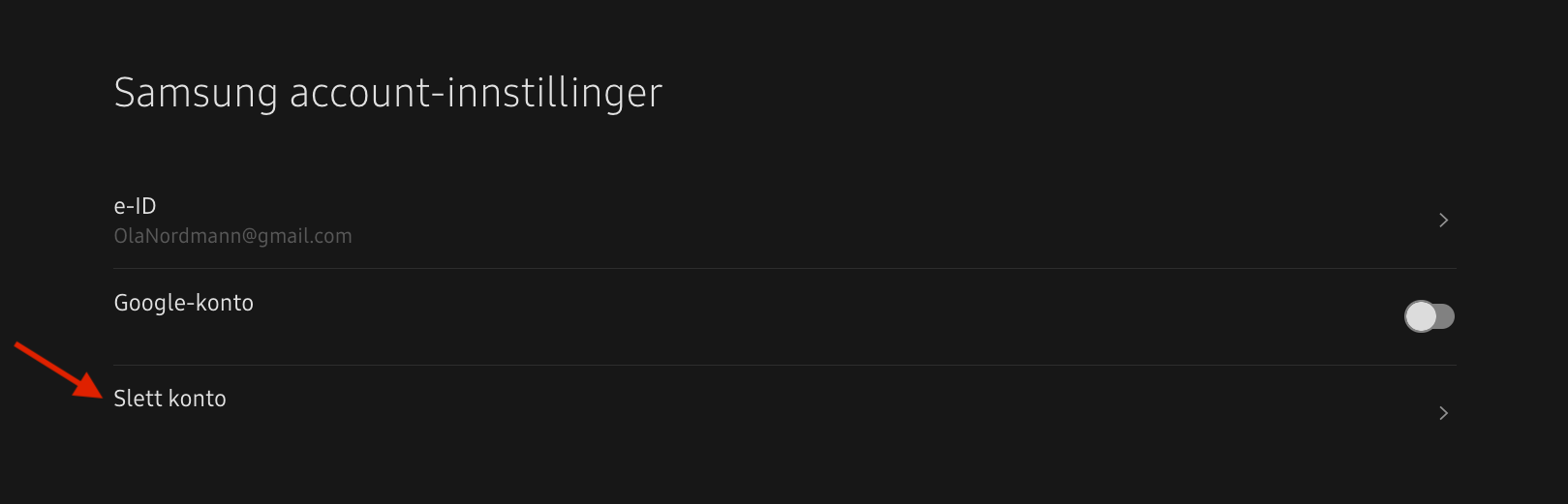 Etter det må du krysse av for du har lest og forstått det de sier angående sletting av Samsung kontoen før du trykker på Slett konto.