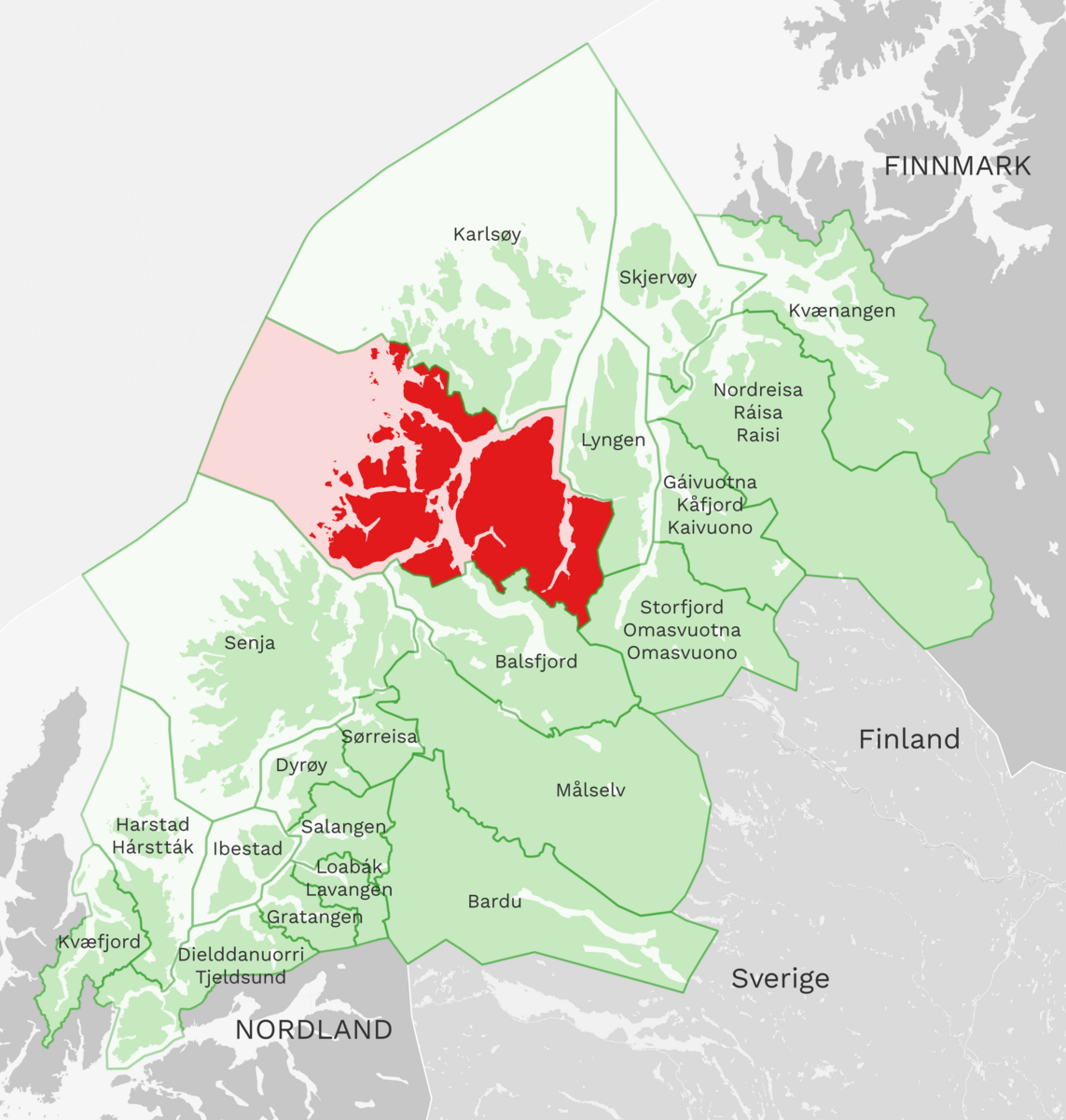 - Tromsø kommune er større enn Vestfold fylke, og består av et utall små lokalsamfunn, fra fiskeværene ut mot Malangsgrunnen og havet, til fjordbygdene under Lyngsalpene.