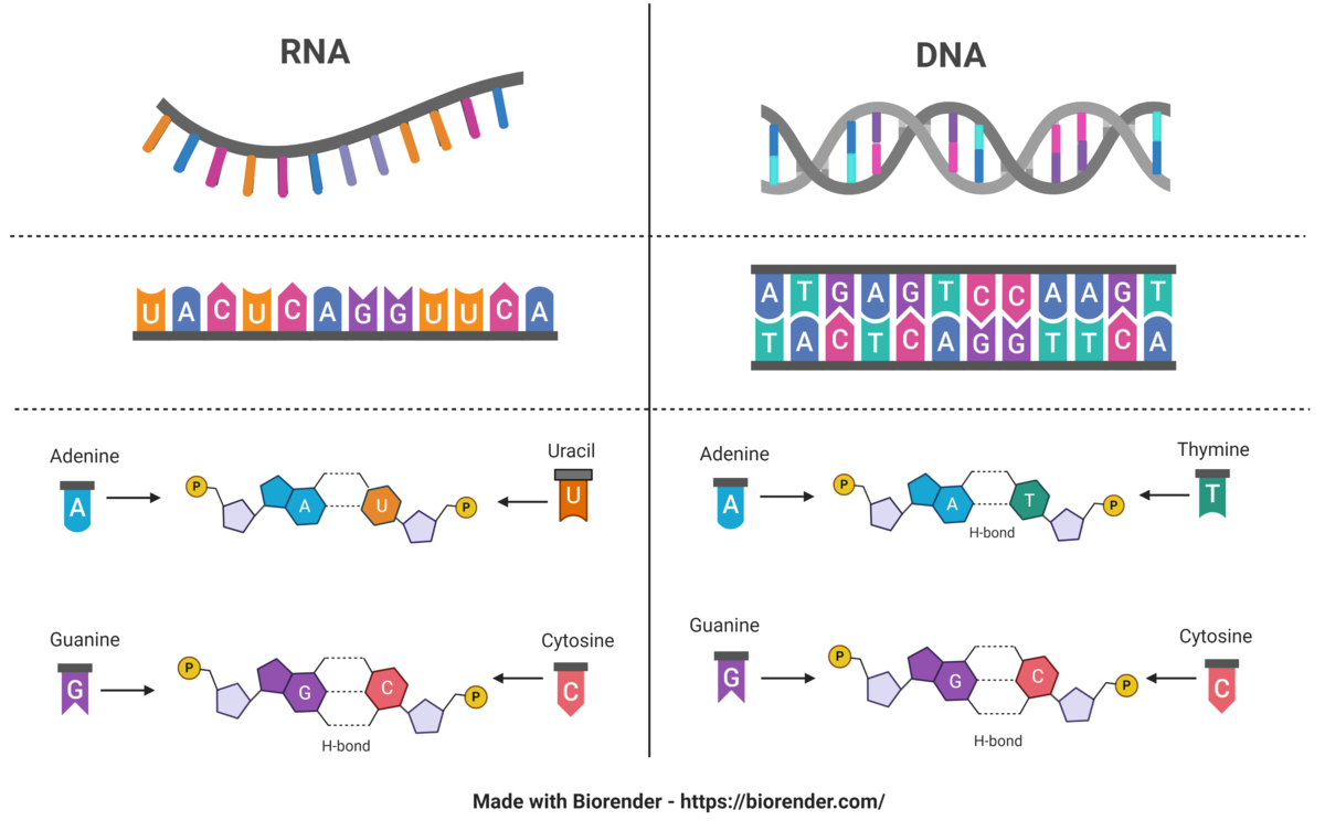 Nukleinsyrene er delt inn i de to hovedgruppene DNA og RNA.