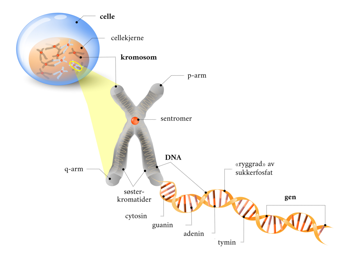 DNA er en forkortelse for det engelske navnet deoxyribonucleic acid (deoksyribonukleinsyre på norsk). DNA utgjør arvestoffet, det vil si alle genene, i en celle. DNA finnes hovedsakelig i cellekjernen i eukaryote celler, men også i mitokondrier, og i kloroplaster i planteceller. I bakterieceller er DNA i cytoplasmaet, siden disse ikke har cellekjerne. DNA er bygget opp av to tråder av nukleotider og er formet som en dobbeltheliks.