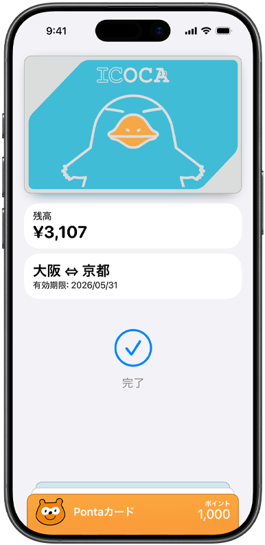 交通機関の利用もここまで簡単。Suica、PASMO、ICOCAをApple Payに追加すると、これまで以上に簡単に使えます。持っているSuica、PASMO、ICOCAのカードをiPhoneやApple Watchに加えるのも、アプリの中で新しく発行するのも自由自在。チャージも今いるその場でどうぞ。定期券の発行と更新もできます。Suica、PASMO、ICOCAはどれも交通系ICカードの全国相互利用サービスに対応。日本全国で電車、バス、タクシーに乗ったり、ショッピングができます。