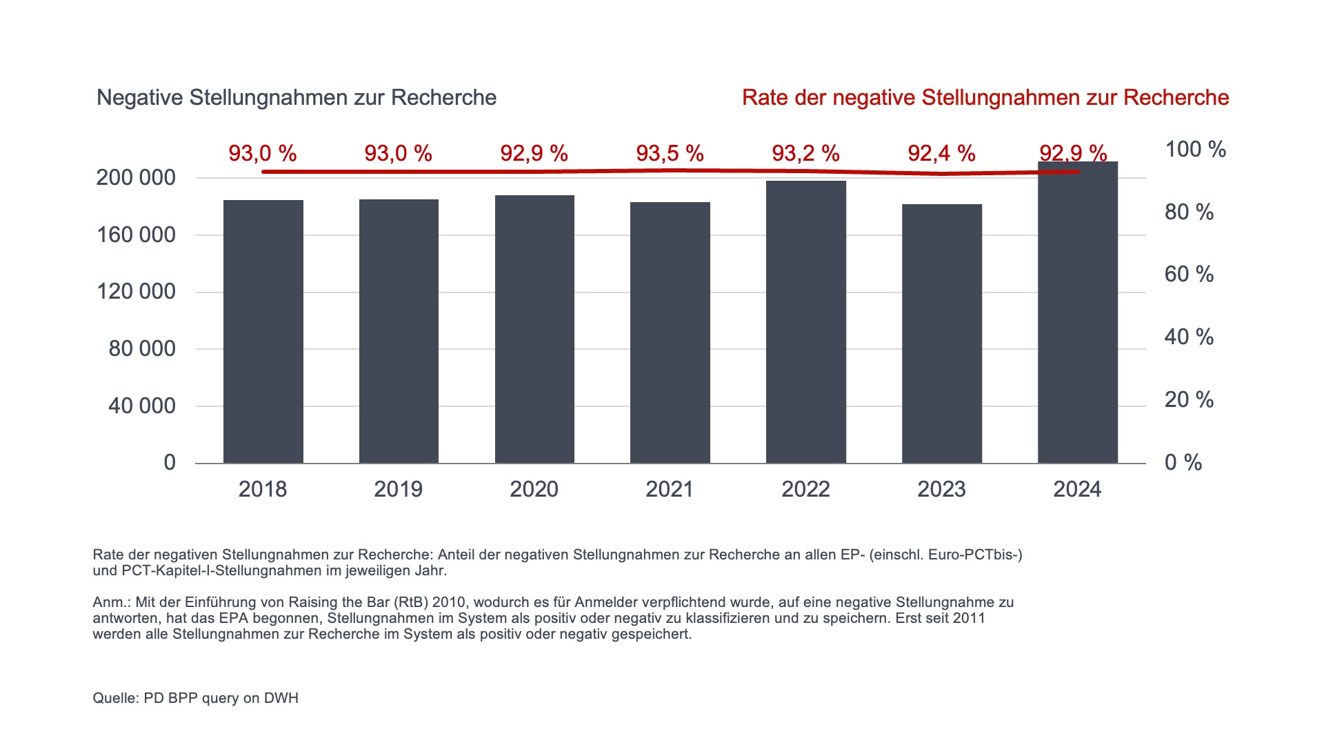 In 27,8 % der Recherchenberichte des EPA wurde 2024 mindestens ein Dokument der Nichtpatentliteratur angeführt.
