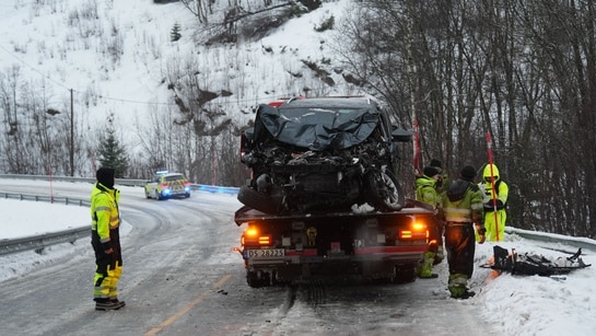 Ein personbil har kollidert front mot front med ein buss på E134 i Ullensvang. Tre personar er frakta til sjukehus, éin av dei til Haukeland i luftambulanse.