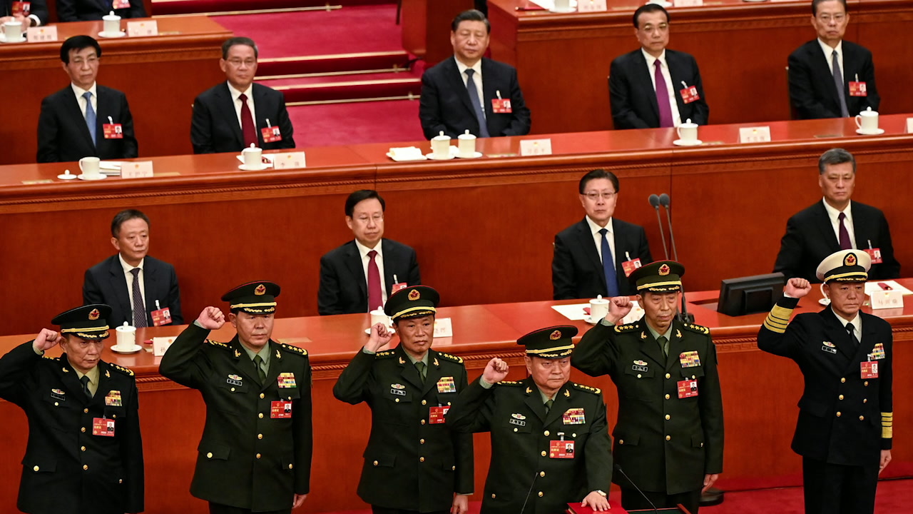 Foto: Ng Han Guan / AP / NTBNo står det berre éin i militærkommisjonen att, Zhang Shengmin, i tillegg til leiaren av militæret: president Xi Jinping sjølv.