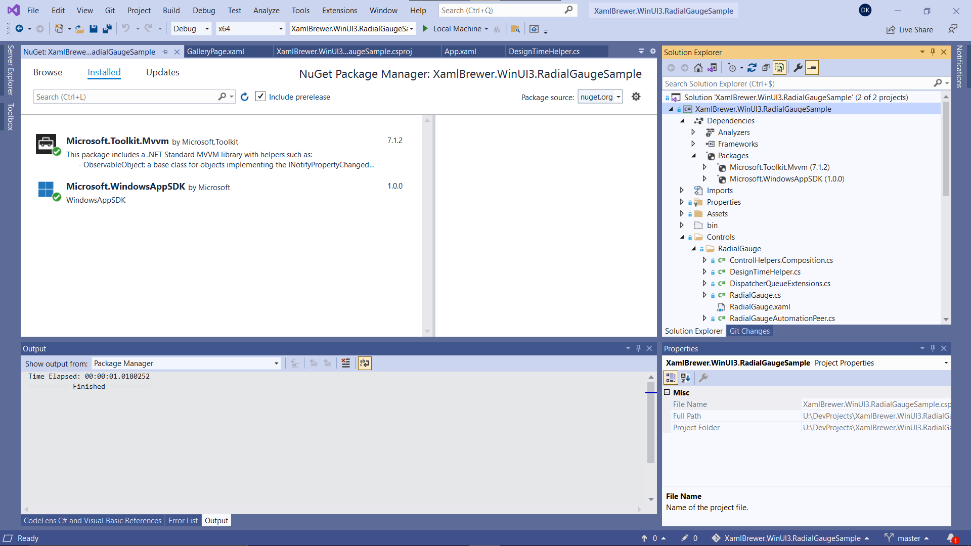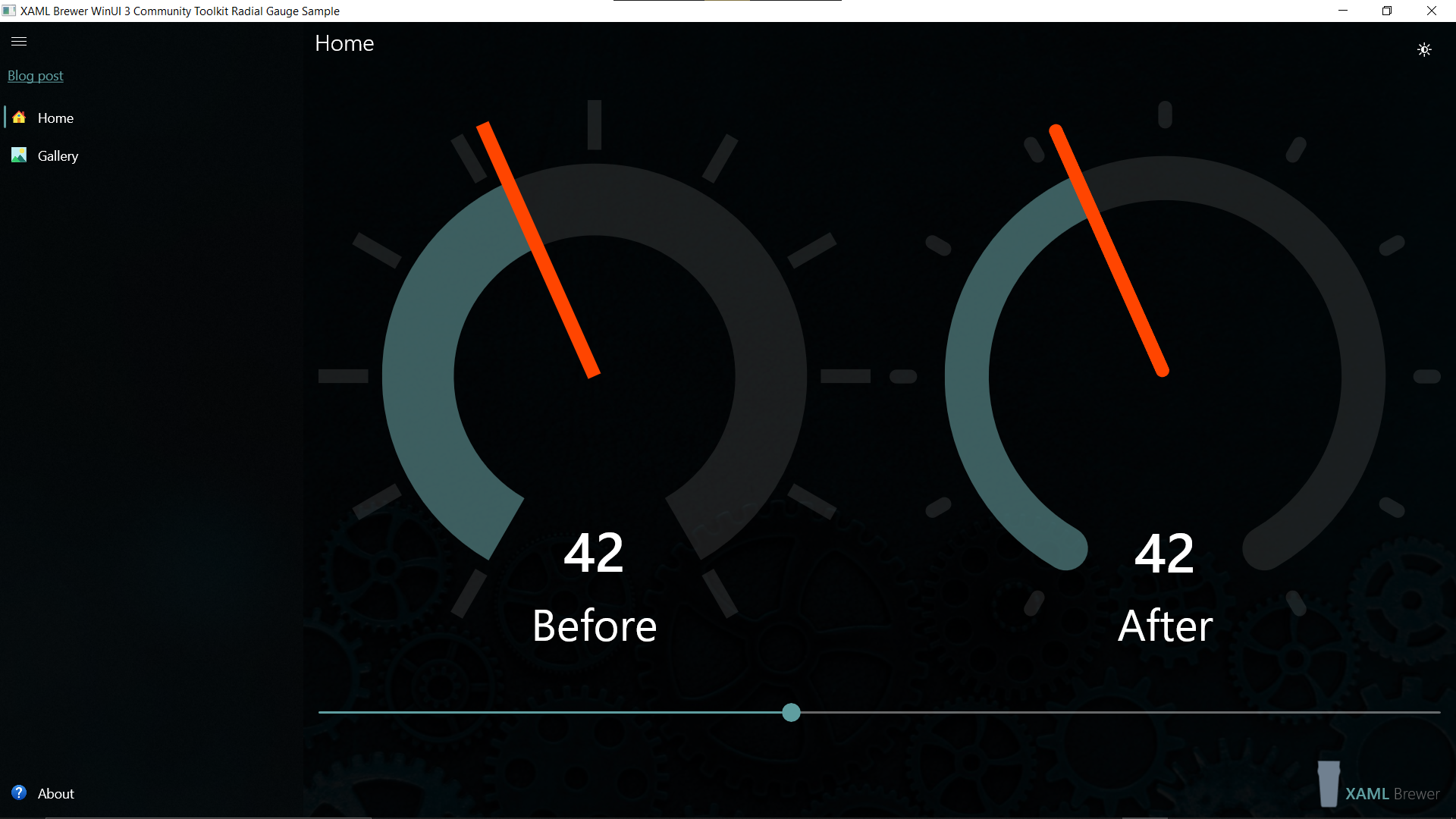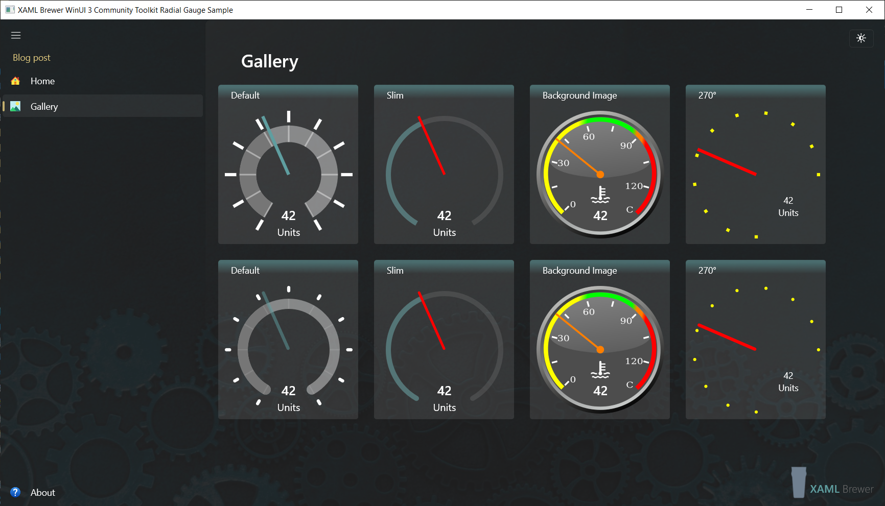 We also added some Windows Community Toolkit controls with a bit more complexity. The RadialGauge renders through the Composition Layer, and the OrbitView mixes XAML elements and images. Here’s how they are defined in the sample page: